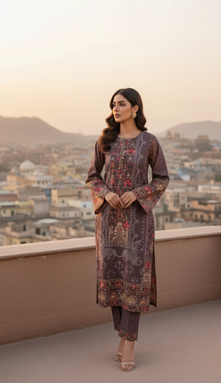Elegant 2-piece cherry fabric suit with vibrant sublimation print. Perfect for festive and formal wear.